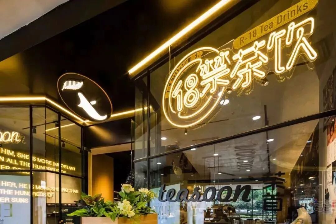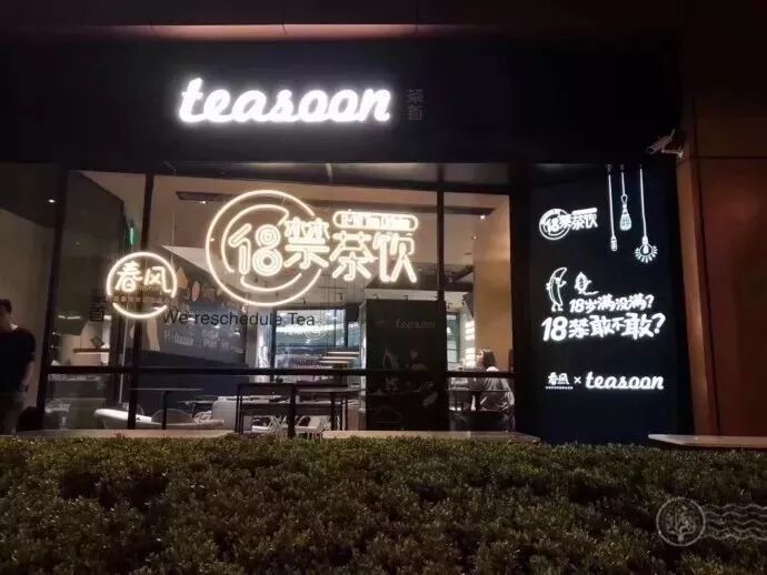 高端商務的Teasoon搭配18禁的霓虹標識「18歲滿不滿,18禁敢不敢?」別具一格的門店設計看起來也很帶感~